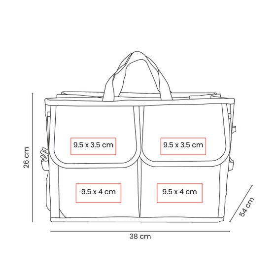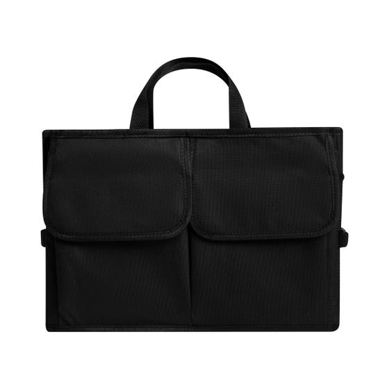 Organizador de cajuela. Diseñado para optimizar el espacio del auto, cuenta con múltiples compartimentos internos que permiten separar y acomodar comestibles, herramientas, artículos de limpieza o accesorios del coche de forma segura. Sus asas laterales facilitan el transporte, y su diseño plegable permite guardarlo fácilmente cuando no está en uso. Cuenta con 4 correas de seguridad ajustables y velcros antideslizantes en la parte inferior, que ayudan a fijar el organizador durante la conducción. Ideal para uso diario, viajes o traslado de compras.